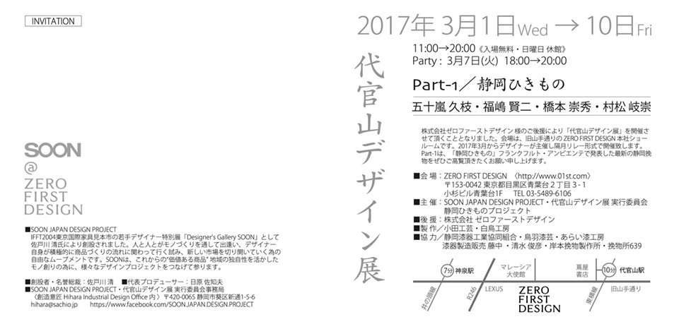 この度、株式会社ゼロファーストデザイン 様のご後援により「代官山デザイン展」を開催させて頂くこととなりました。会場は、旧山手通りの ZERO FIRST DESIGN 本社ショールームです。